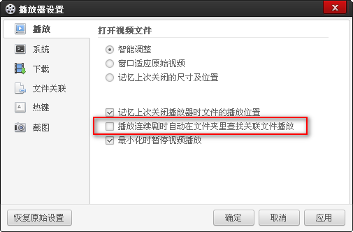 当开启了添加相似名称文件功能的时候,添加一个文件时会把关联的剧集都添加进来。在播放器设置-播放面板中取消勾选 播放连续剧时自动在文件夹里查找关联文件播放 一项即可。