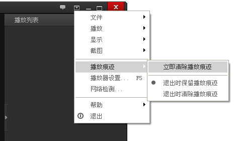 播放痕迹是指播放列表以及最近播放中的所有记录。如图,当您勾选了退出时清除播放痕迹一项时,每次关闭百度影音将会清空播放列表和最近播放记录。